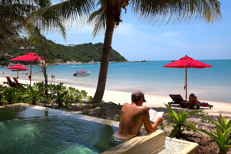A man reads a book at the Anantara Rasananda in Koh Phangan, Thailand. Paula Bronstein/Getty Images